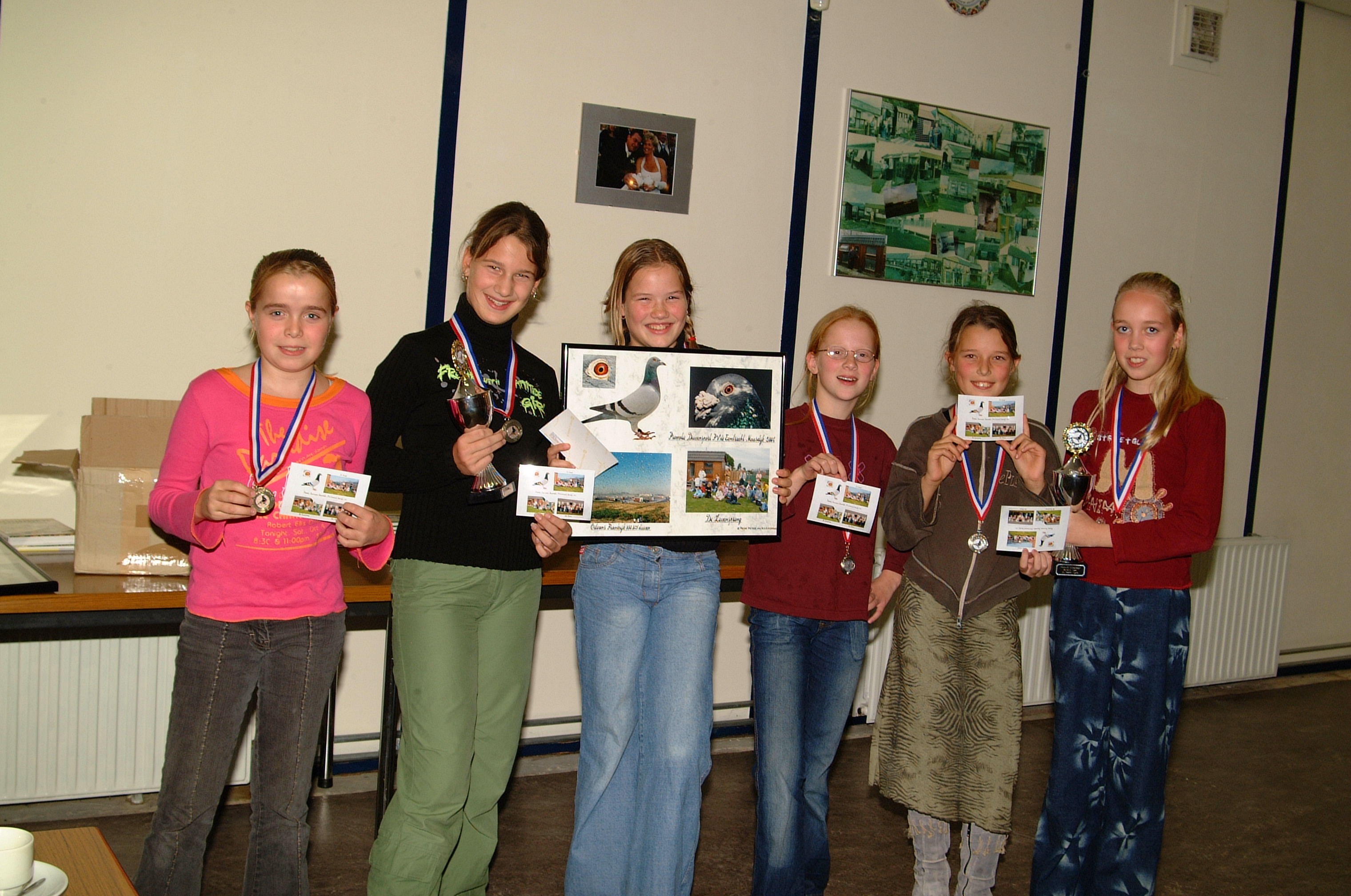 De scholen kregen tevens als blijvende herinnering een prachtige ingelijste fotocollage aangeboden die door de bekende duivenfotograaf Peter van Raamsdonk gratis ter beschikking was gesteld!