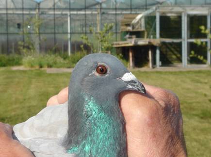 Nou worden er heel wat duiven gelost van andere organisaties dus je ziet nogal wat duiven over vliegen die niet van ons concours zijn. Maar plots werden we verrast door een drietal duiven dat boven onze hokken rondjes maakte. Echt vroege duiven doen dat niet en melden zich als een speer op de klep om naar binnen te gaan. Nee, deze drie gingen wat versuft op het dak zitten en lieten ons in opperste verwarring. Na zo’n halve minuut ging er dan toch een naar de klep van het verenigingshok. Het was de Belg van Maaike v.d. Burgh & André Mosterd, de 2251899, die om 9 uur 23 werd geconstateerd.