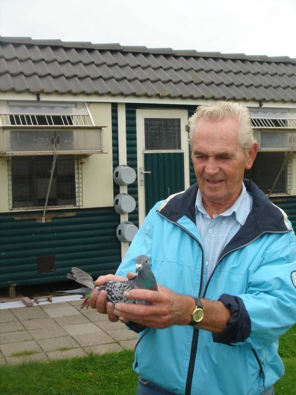 Op 10 uur 56 kwam de eerste duif van het promotiehok, het was de 5700109 van P. v. Staalduinen & J. Meersen. Een prachtig duivinnetje gekweekt uit een doffer die Piet vorig jaar op de verkoop van het promotiehok had gekocht.